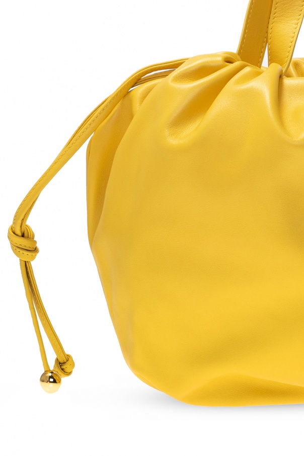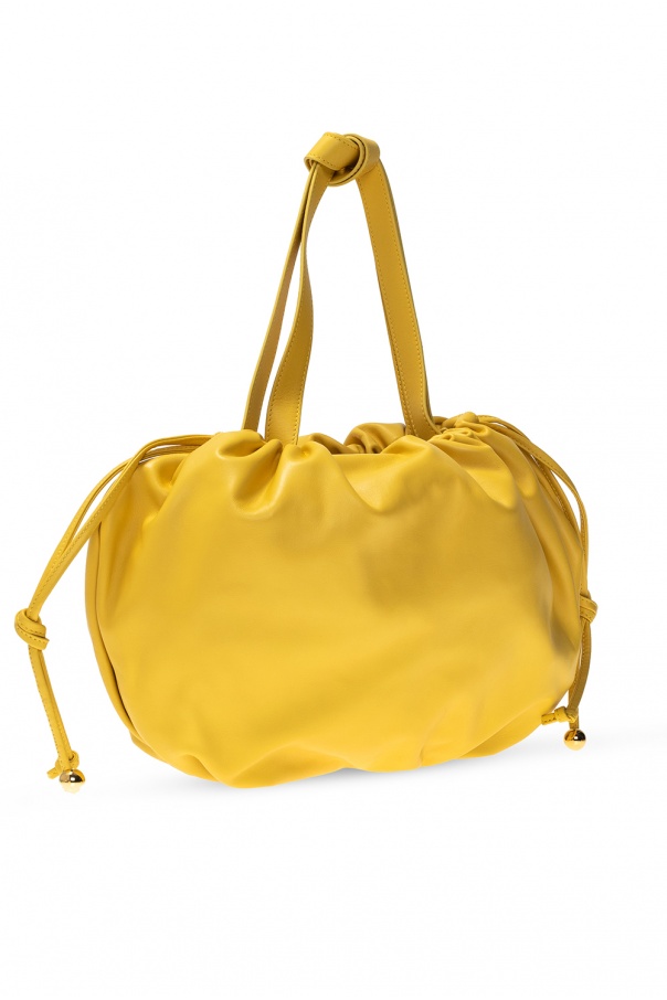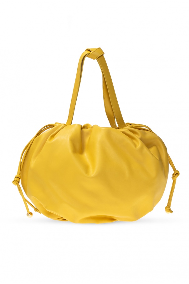 Yellow ‘The Medium Bulb’ hand bag from Bottega Veneta. Crafted from calf leather, this design features a drawstring fastening with gold-tone beads, two detachable half-round handles and one internal compartment.