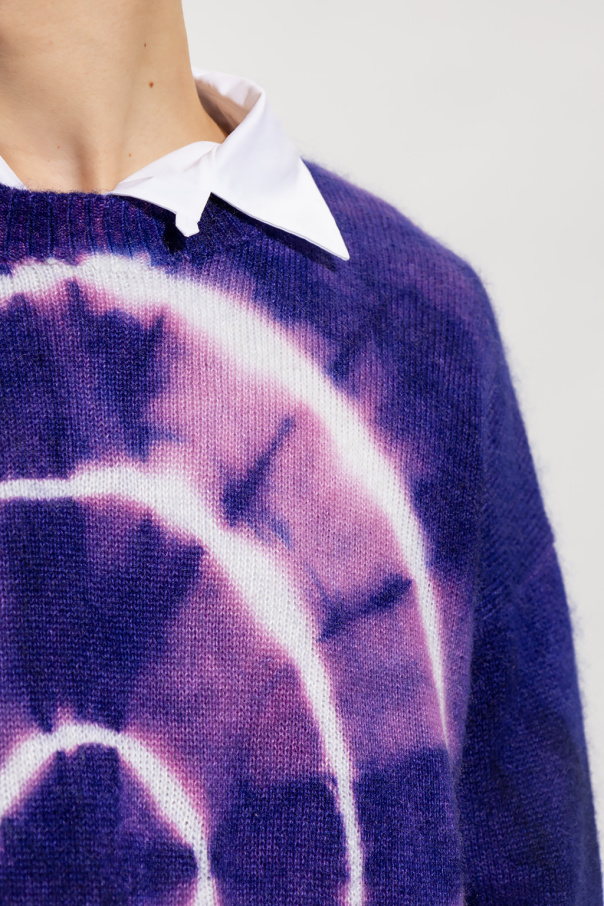 Purple, pink and white crewneck sweater from Off-White. Crafted from a tie-dyed blend of mohair and wool, this style features long sleeves and ribbed trims on the edges.