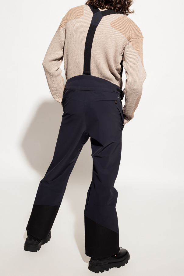 Black ski trousers from Moncler Grenoble. Crafted from nylon with a technical outer shell and equipped with lightweight Primaloft® Gold Insulation Active which ensures breathable comfort, warmth and fast-drying properties. This pair features zip, hook and button fastenings, detachable and adjustable suspenders, zipped ventilation inserts on the front, four zipped pockets and elasticated cuffs with zipped vents. This model presents functional details like: Recco reflector technology that allows the wearer to be detected by rescuers, shoe hooks, and tool pockets with waterproof YKK® AquaGuard® zip closures.