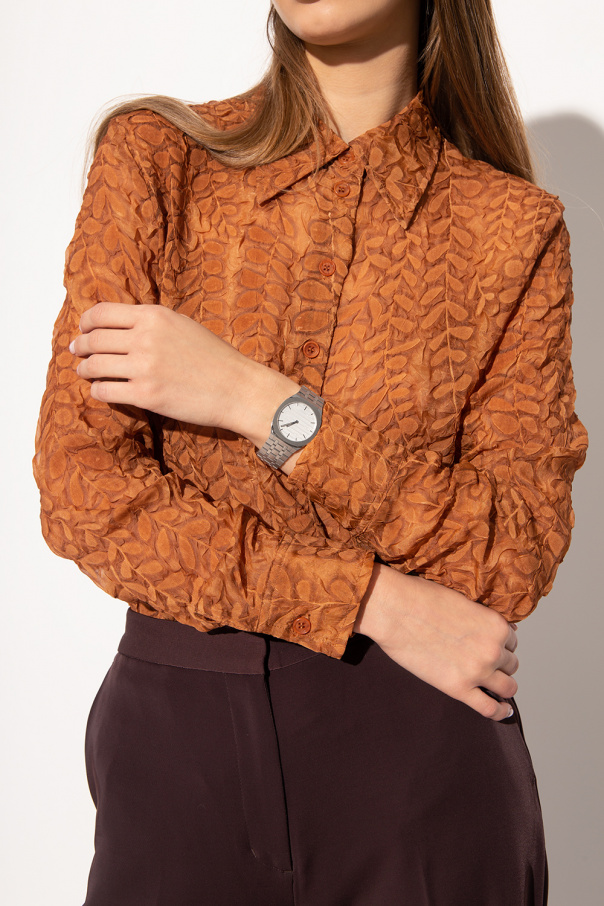 Silver-tone ‘Gucci 25H’ watch from Gucci. Crafted in the Swiss Kering watch manufacture, it is characterized by an innovative, ultra-thin 4mm case made of stainless steel. Polished and satin steel finish. The GUCCI 25H is playfully named after one of Alessandro’s Michele favourite numbers, which he considers a talisman and often includes in his Gucci collections.