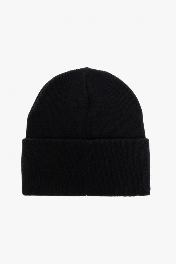 Black beanie from Lacoste. Crafted from a wool blend, this item features a logo patch on the front.