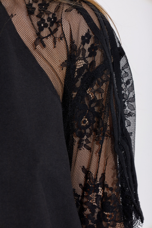 Black crewneck T-shirt from ADIDAS Originals, the ‘End Plastic Waste’ line. Made from cotton with a relaxed fit, this style features white logo embroidery on the front, and lace sleeves accentuated with the brand's signature three stripes.