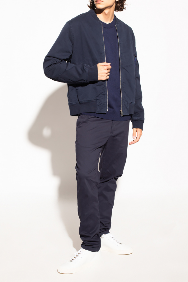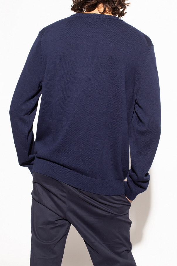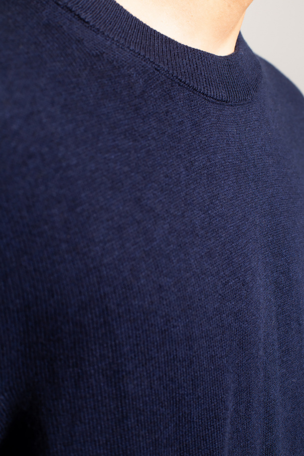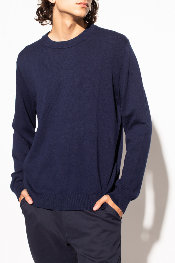 Navy blue crewneck sweater from Samsoe Samsoe. Crafted from a cashmere and organic cotton blend, this style is complete with elasticized edges.
