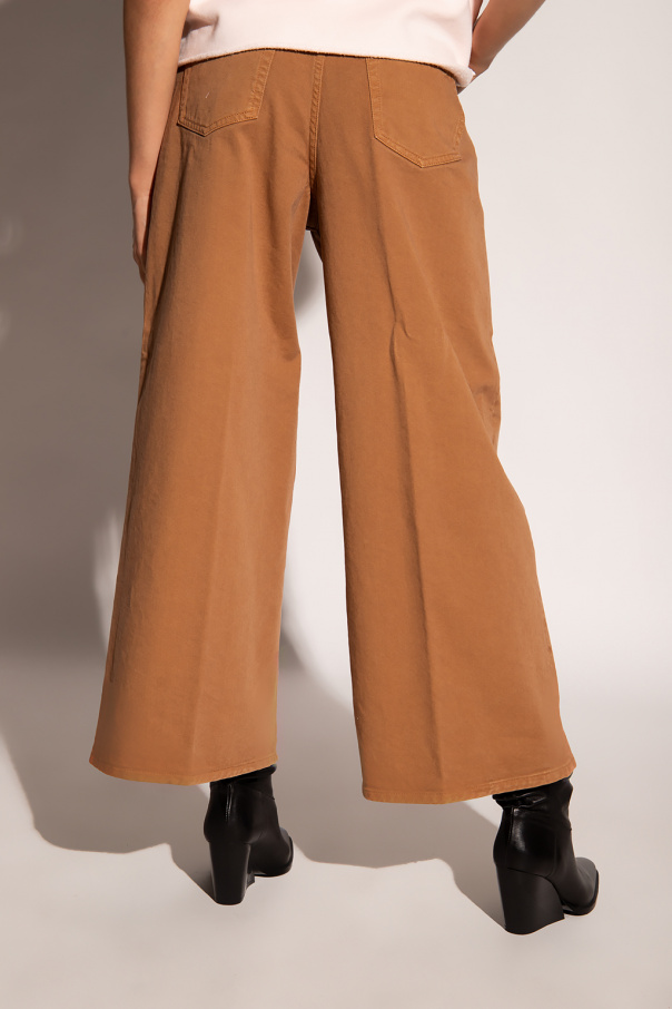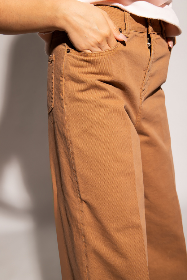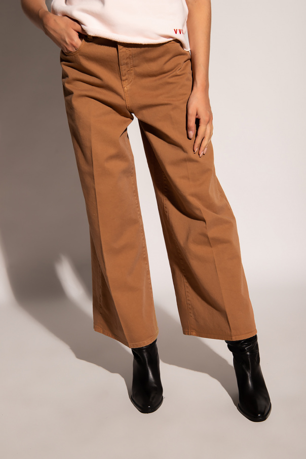 Brown jeans from Victoria Victora Beckham. Fastened with a zip and button, this pair falls down with cropped legs and is complete with three front pockets and two back pockets.