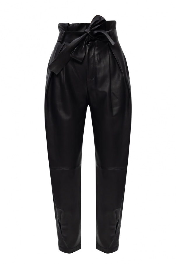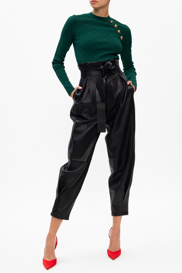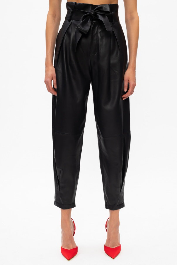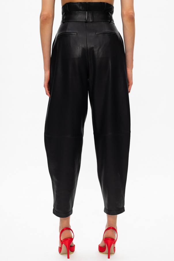 Black trousers from Red Valentino. This high rise design is crafted from lambskin and features zip and hook fastening, belt at the waist, four slip pockets and slightly tapered legs.