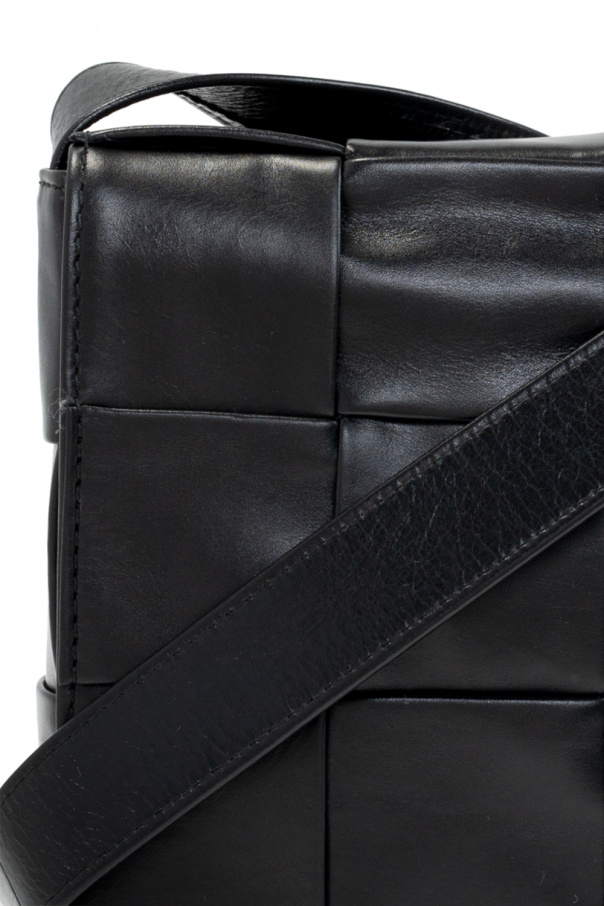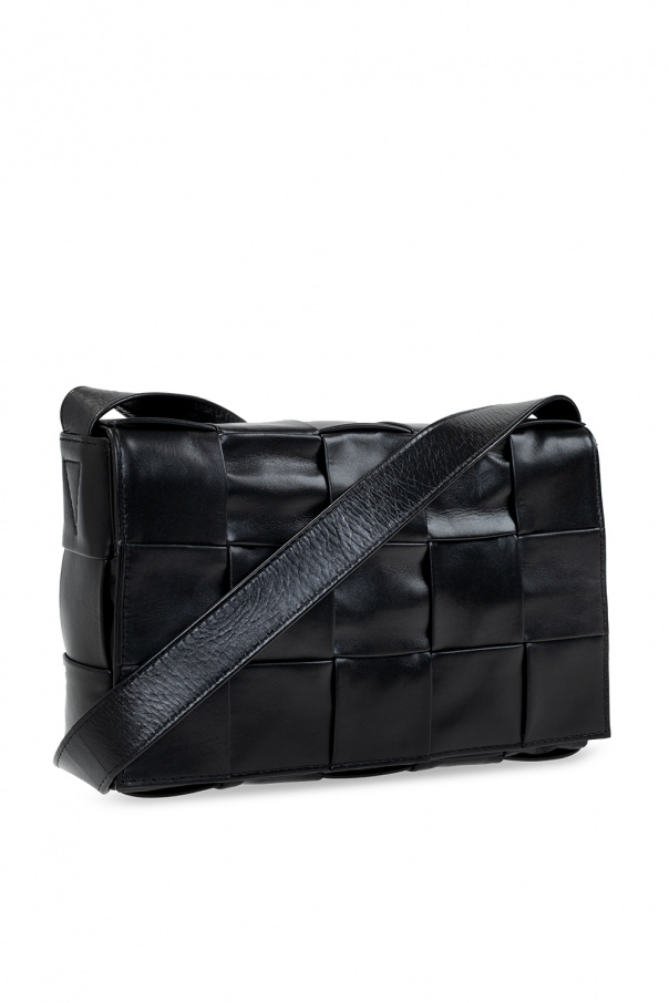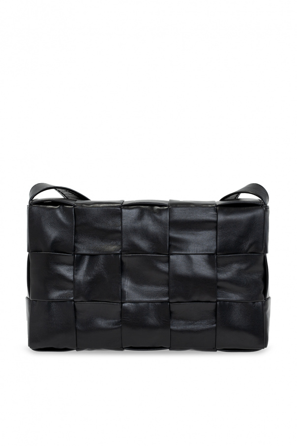 Black ‘Casette’ shoulder bag from Bottega Veneta. Crafted from calf leather with the label’s signature Intrecciato weave, this model fastens with a magnetic snap and is complete with an adjustable shoulder strap, silver-tone metal hardware and one internal compartment with one zip pocket.