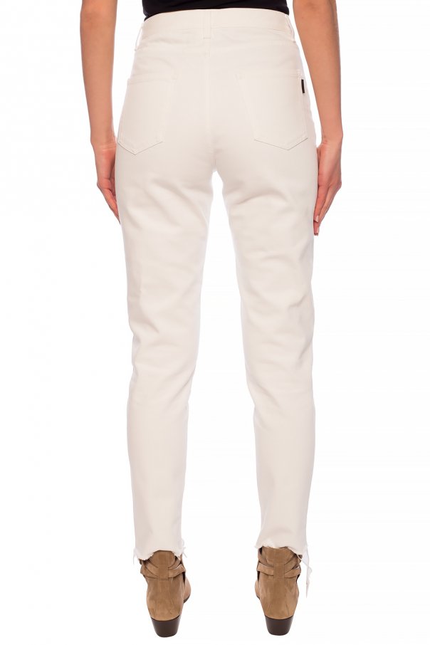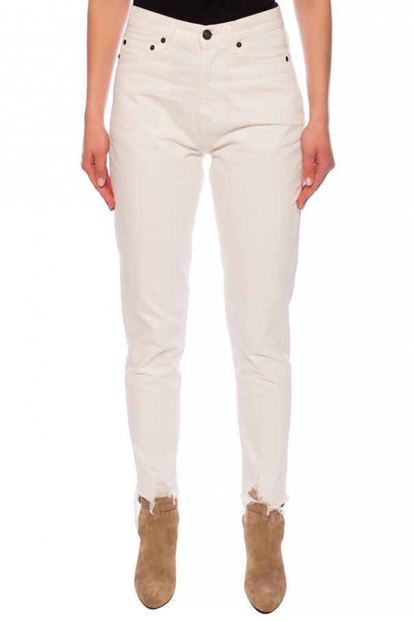 White high-waisted jeans from Saint Laurent. Zip and button fastening. Raw-trimmed legs.