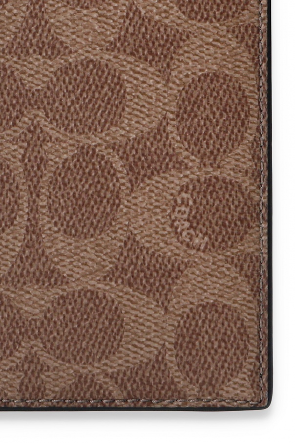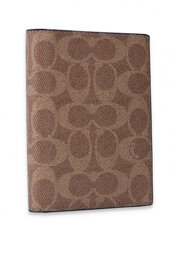 Beige and brown passport holder from Coach. Crafted in the brand's signature canvas, this accessory features a passport slot, a slip pocket and three credit card slots on the inside.