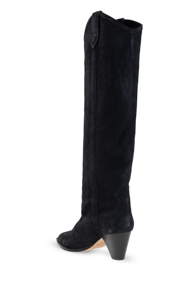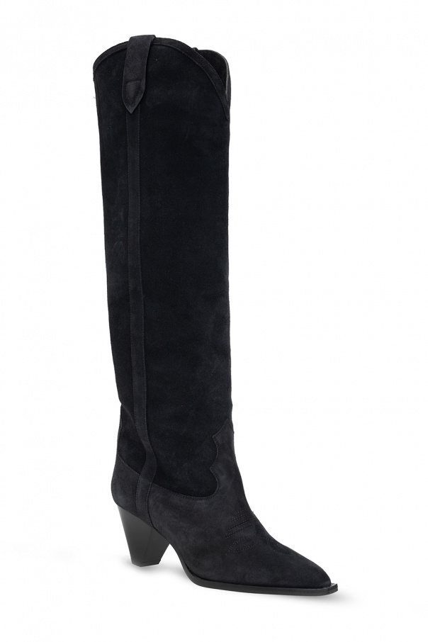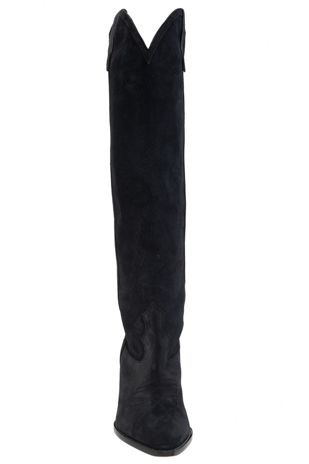 Black ‘Lihana’ heeled boots from Isabel Marant. Crafted from suede, this pair features stitching details and leather sole in beige and black.