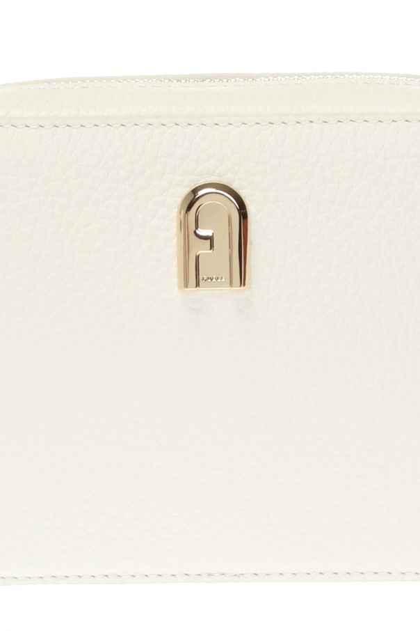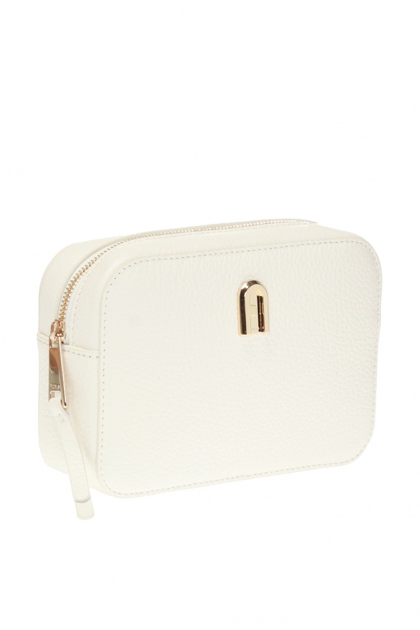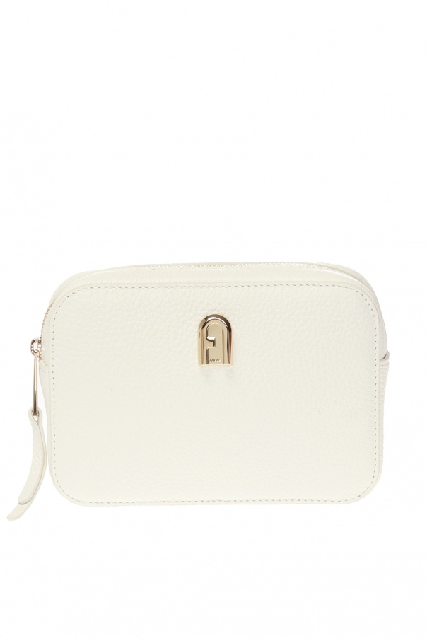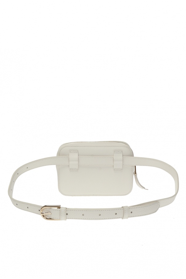 White ‘Sleek’ belt bag from Furla. Made of textured leather. Zip fastening. Decorated with a gold-tone logo applique. Detachable, adjustable shoulder strap. One compartment and a slip pocket inside. Gold-tone metal hardware.