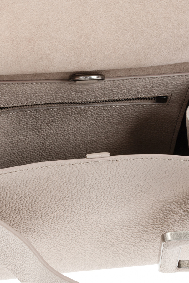 Greyish beige ‘Karl 24 Soft’ handbag from Boyy. Made of calf leather, this design features a hook fastening, a flap with a decorative buckle, a half-round handle, antiqued silver-tone metal hardware and a suede-clad interior with one compartment and one zipped pocket.