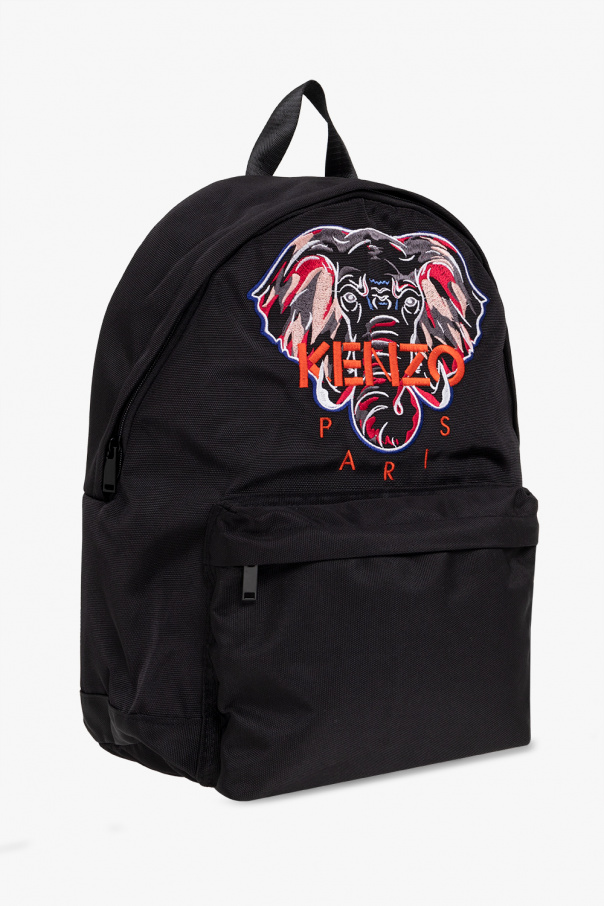 Black backpack from Kenzo Kids. Embellished with an animal motif accompanied by a logo, this design features a zip fastening, a zip front pocket, a half-round handle, adjustable shoulder straps, black metal hardware and one internal compartment with a zip pocket.