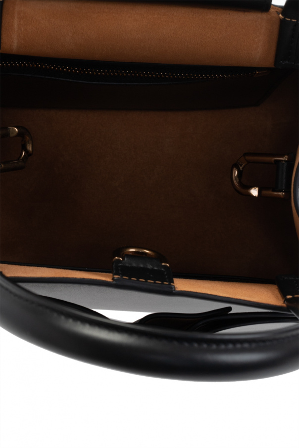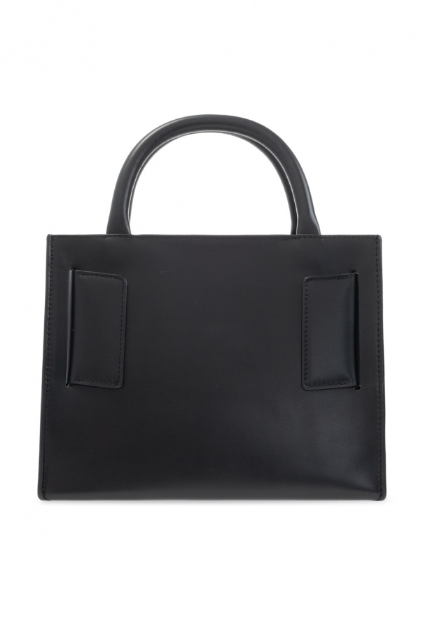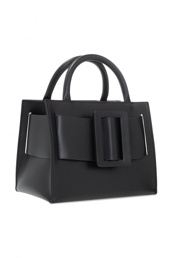 Black ‘Bobby 23’ handbag from Boyy. Crafted from calf leather, this model fastens with a clasp and is enriched by a decorative buckle. It is complete with two half-round handles, detachable and adjustable strap as well as antiqued silver-tone metal hardware. It has one internal compartment with beige suede lining, slip pocket and zip pocket made from leather.