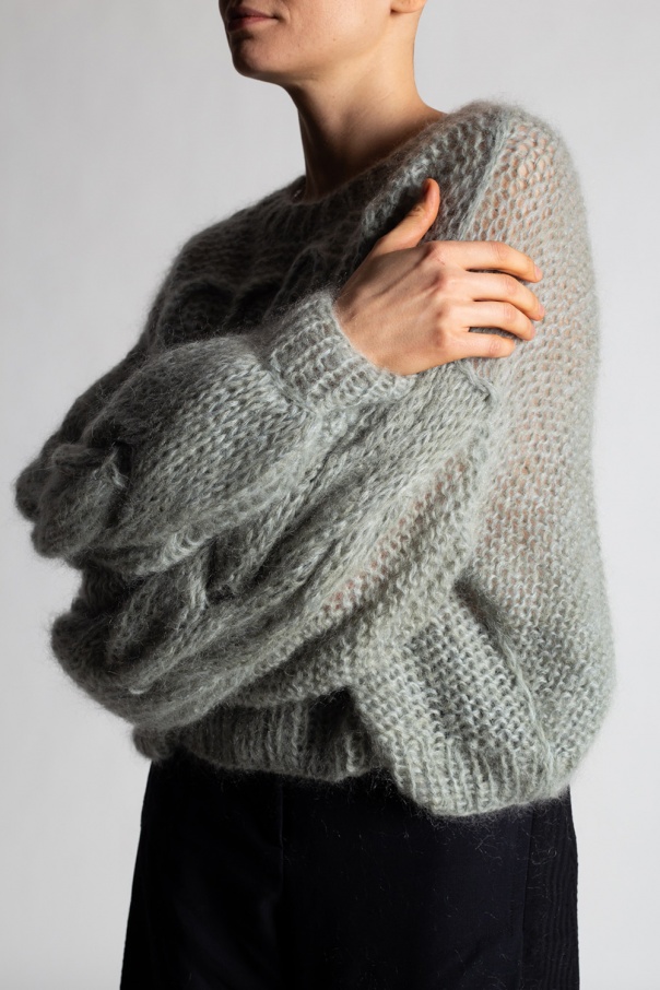Green and blue crewneck sweater from Loewe. Knitted from mohair, this jumper showcases a raised logo across the front.