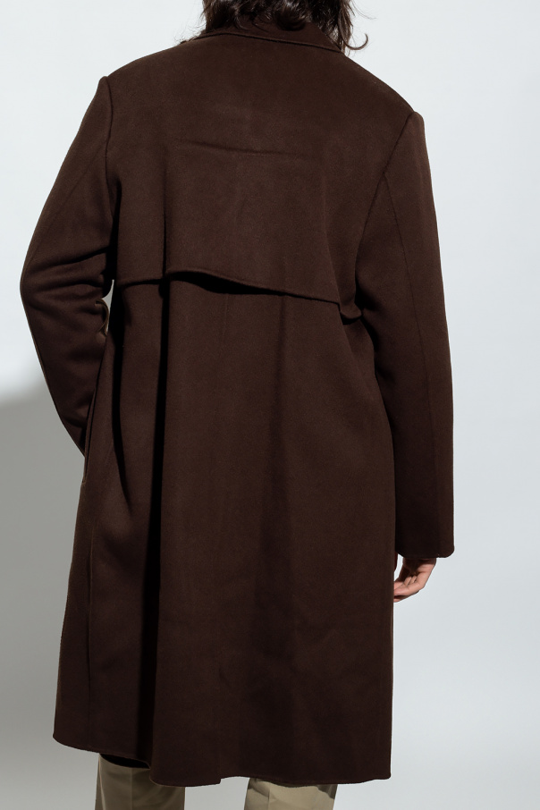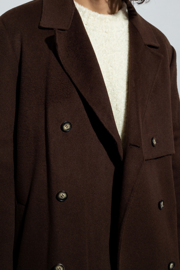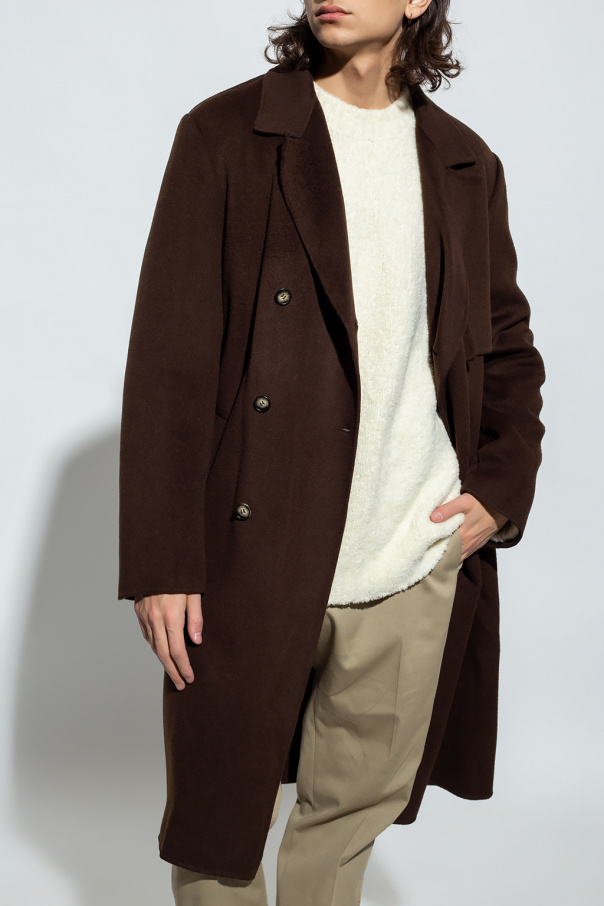 Brown ‘Bayl’ coat from Nanushka. Crafted from wool with a double-breasted silhouette, this style features button fastenings, two slip pockets and long sleeves.