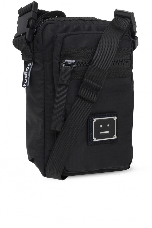 Black shoulder bag from Acne Studios. Enriched by a logo application, this design features a zip fastening, a zipped pocket on the front, a shoulder strap, silver-tone metal hardware and one internal compartment.