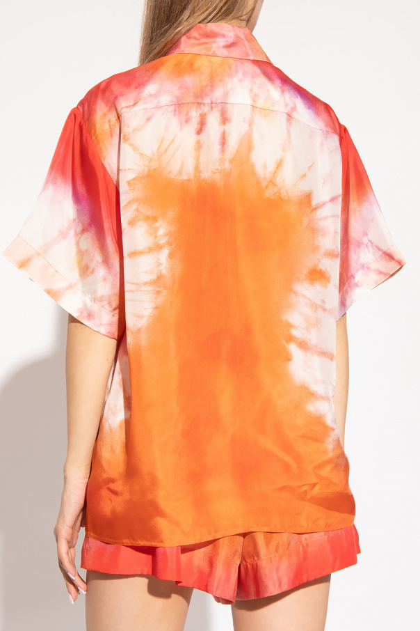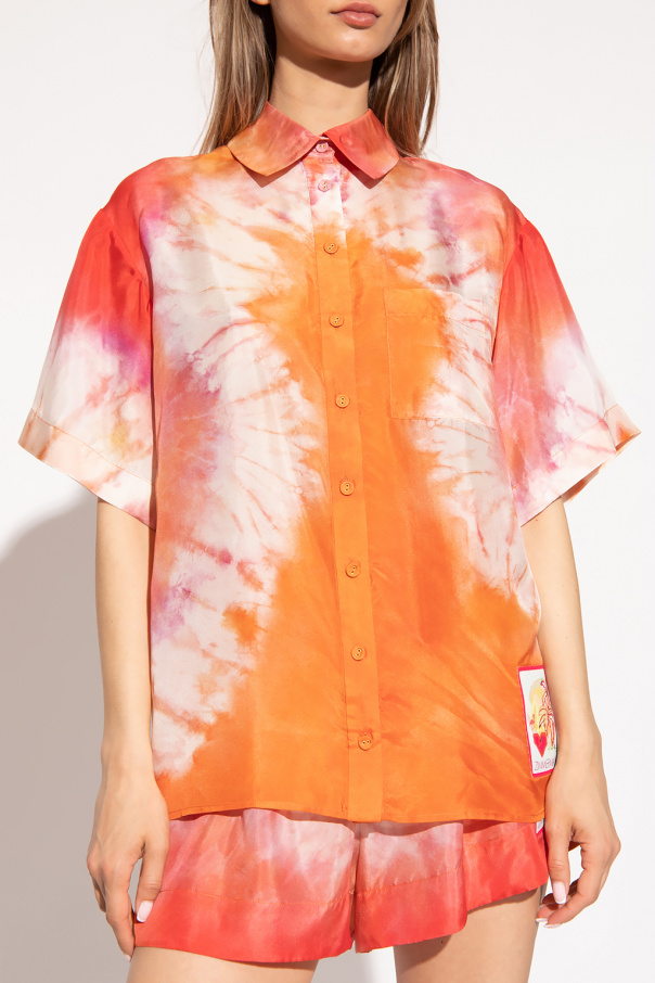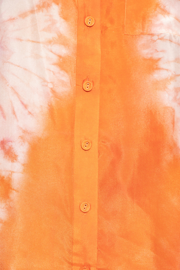 Orange shirt with short sleeves from Zimmermann. Made of silk, this garment is enriched by button fastenings, multicolored tie-dye effect, logo patch and one slip pocket.