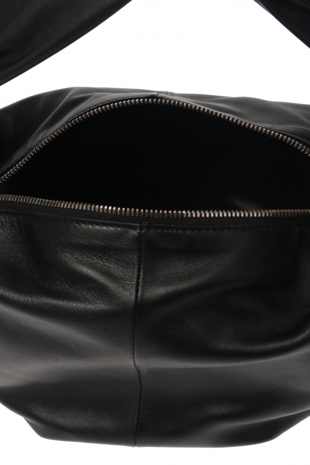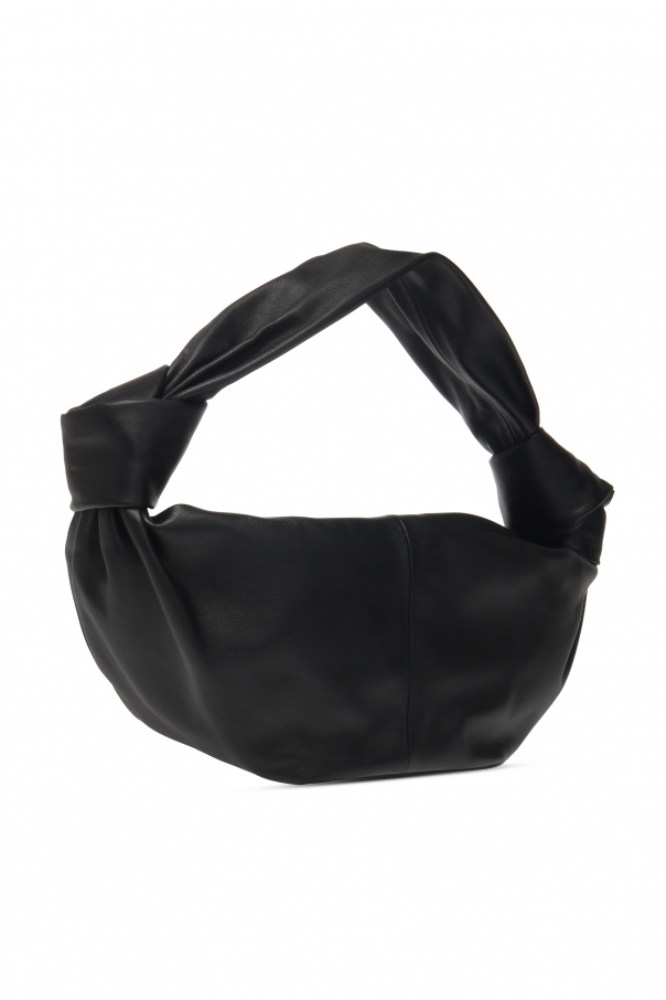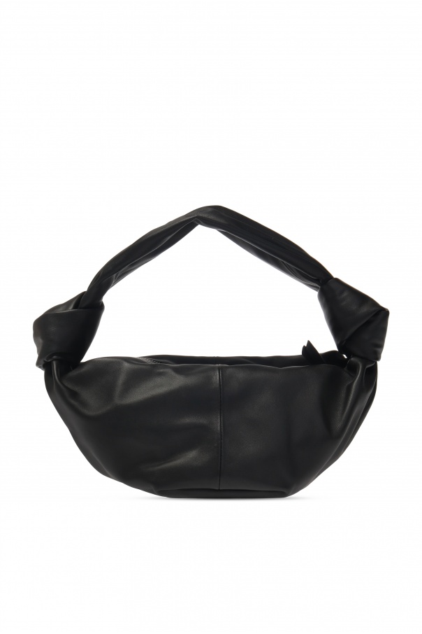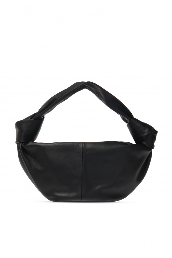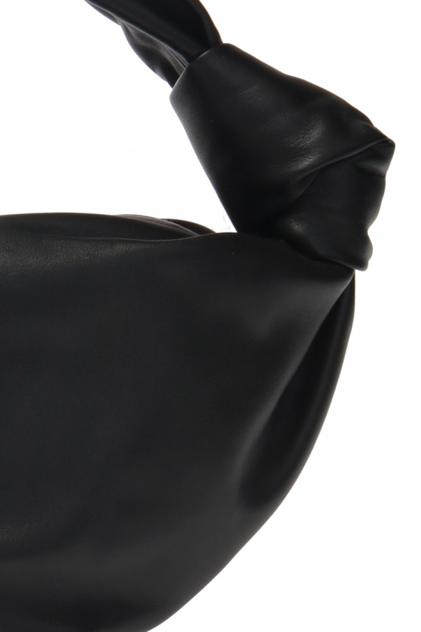 Black hand bag from Bottega Veneta. Size mini. Distinguished with knot details, this calf leather-crafted design is complete with zip closing, gold-tone metal hardware and interior with one compartment.