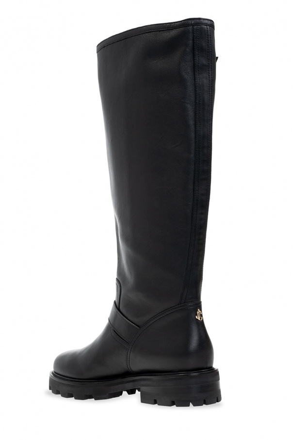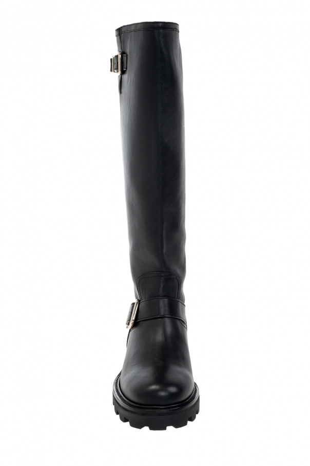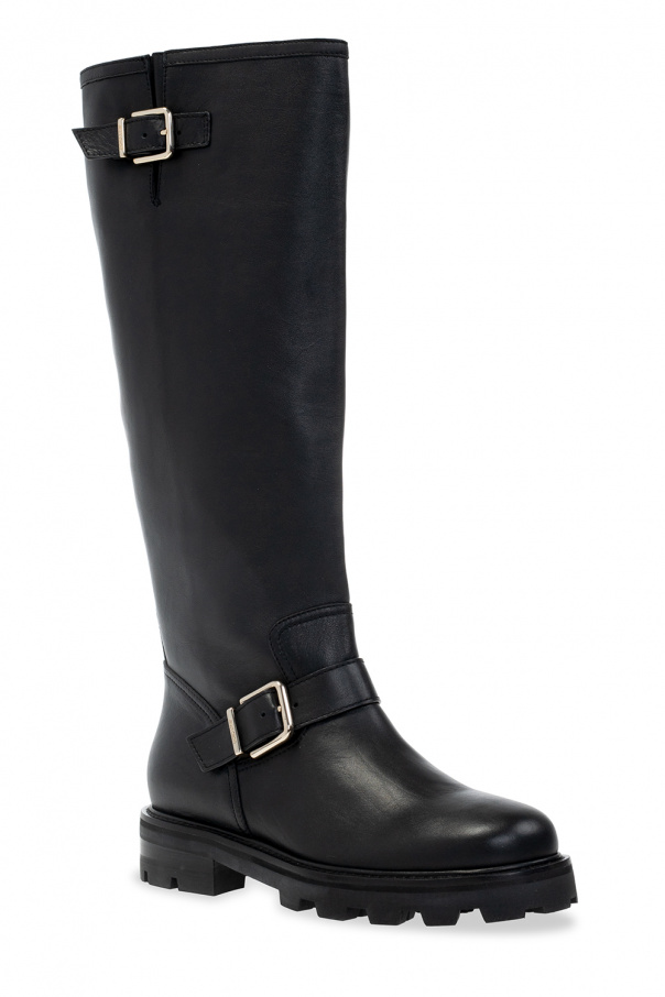 Black ‘Biker II’ heeled boots from Jimmy Choo. Made of leather, this design features adjustable buckle straps and a black rubber sole.