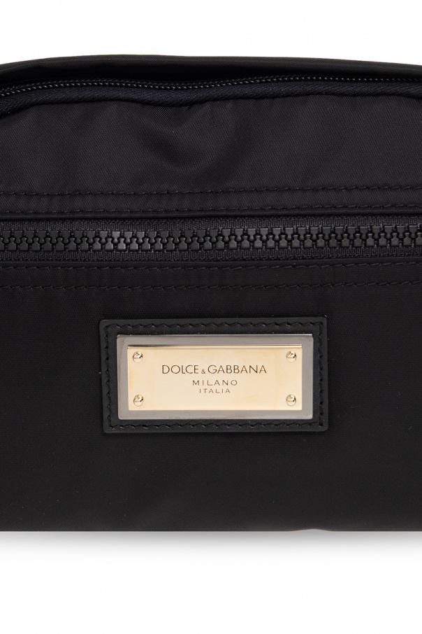 Black shoulder bag from Dolce & Gabbana. Fastened with a two-way zip, this style features a metal logo appliqué, zip pocket on the front and back, adjustable belt with a clasp buckle, dark silver-tone metal hardware and one internal compartment with a lining decorated with an animal pattern in grey and black.
