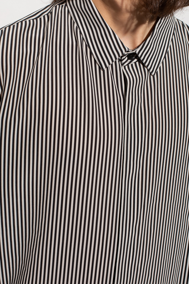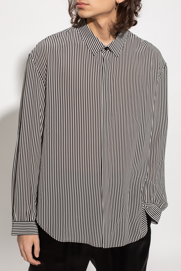 Classic, black and white shirt with a collar from Saint Laurent. Made of textured organic cotton, this garment features buttons with a concealed placket and long sleeves.