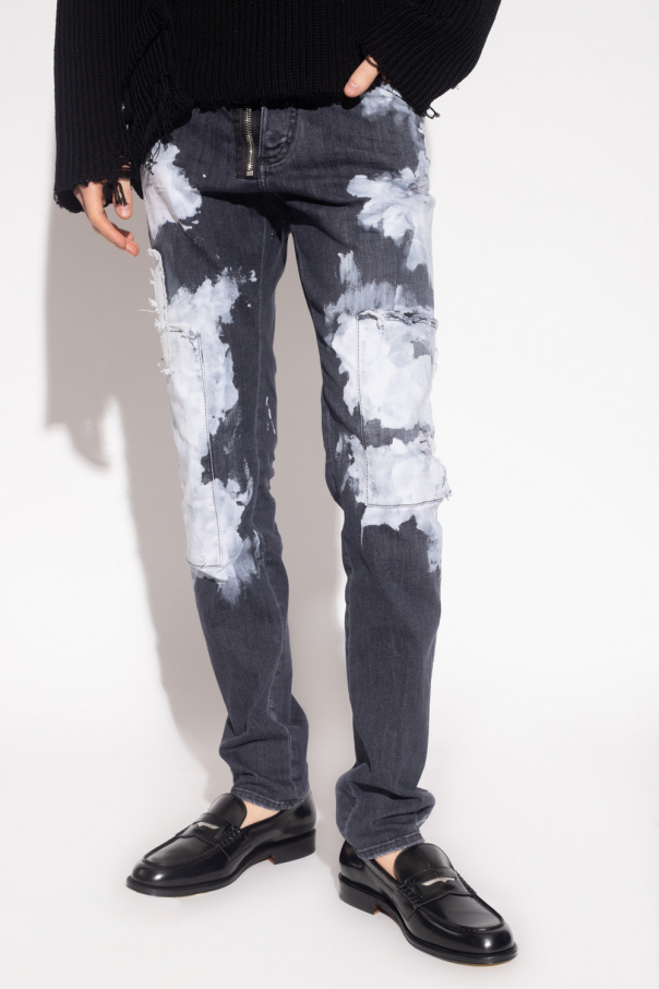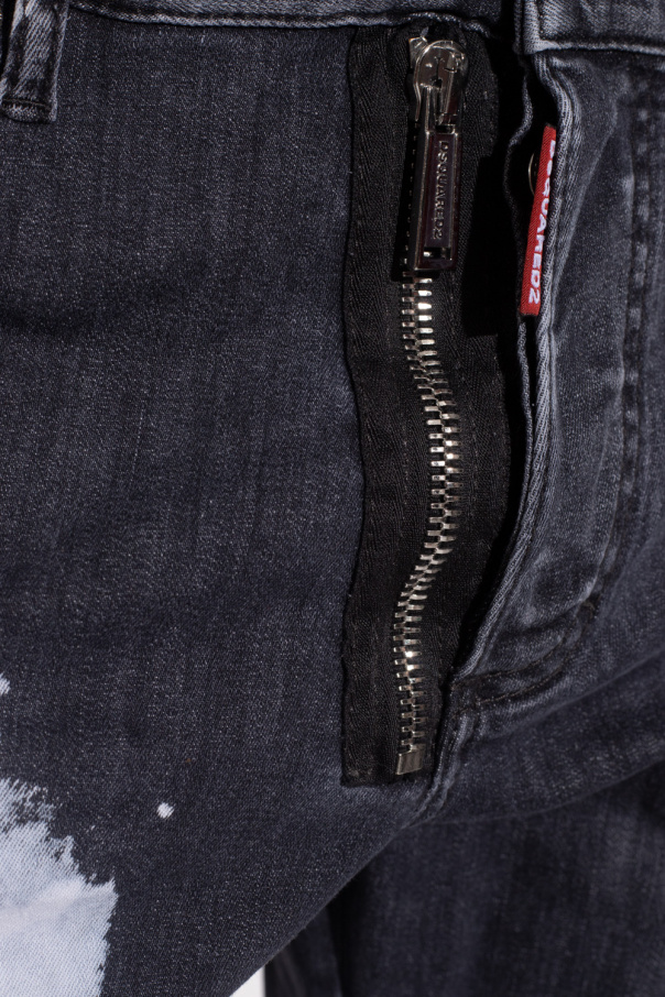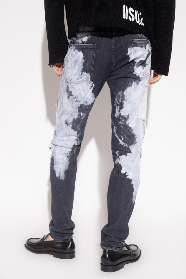 Grey ‘Cool Guy’ jeans from Dsquared2. Falling with tapered legs, this pair features a zip fly with a hidden button placket with a red and white logo tag, classic five pockets, raw patches, a back logo patch and a decorative bleached treatment.