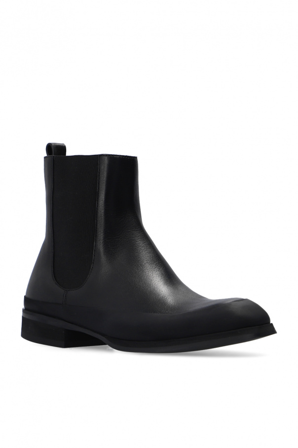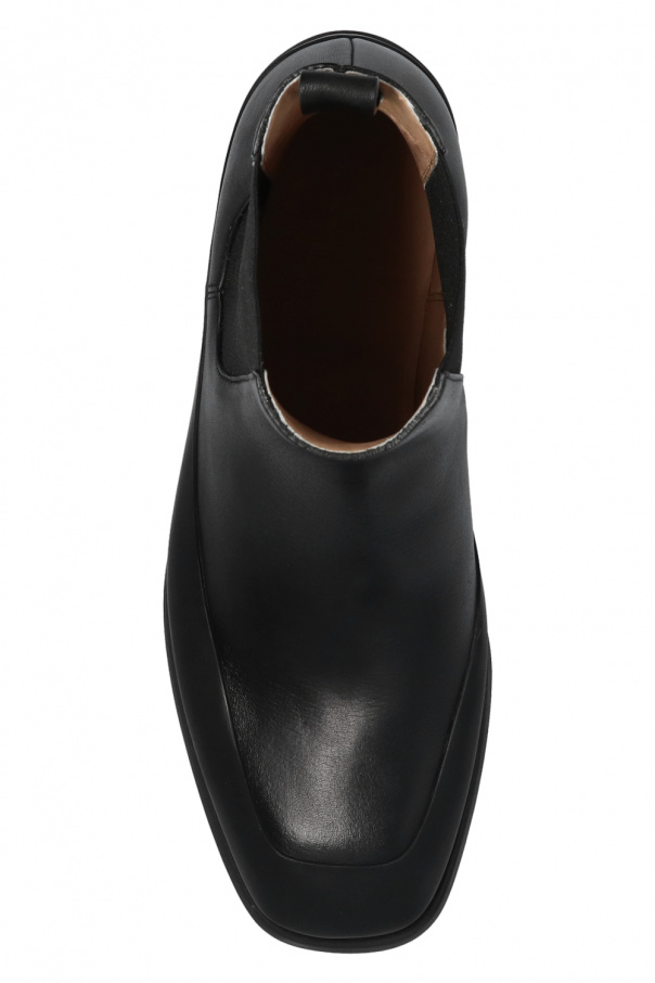 Black ‘Garden Boot’ ankle boots from The Row. Crafted from leather, they sit on a black rubber sole and feature elastic panels on the sides.