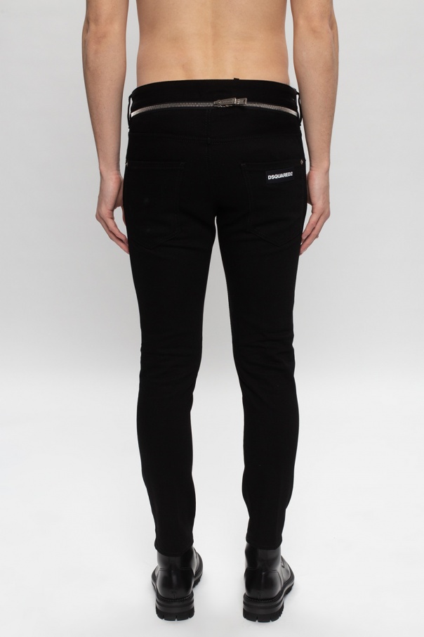 Black ‘Skater’ jeans from Dsquared2. Fastened with buttons. Decorated with a logo patch. Two zips sewn-in at the back. 3 slip pockets on the front, 2 at the back.