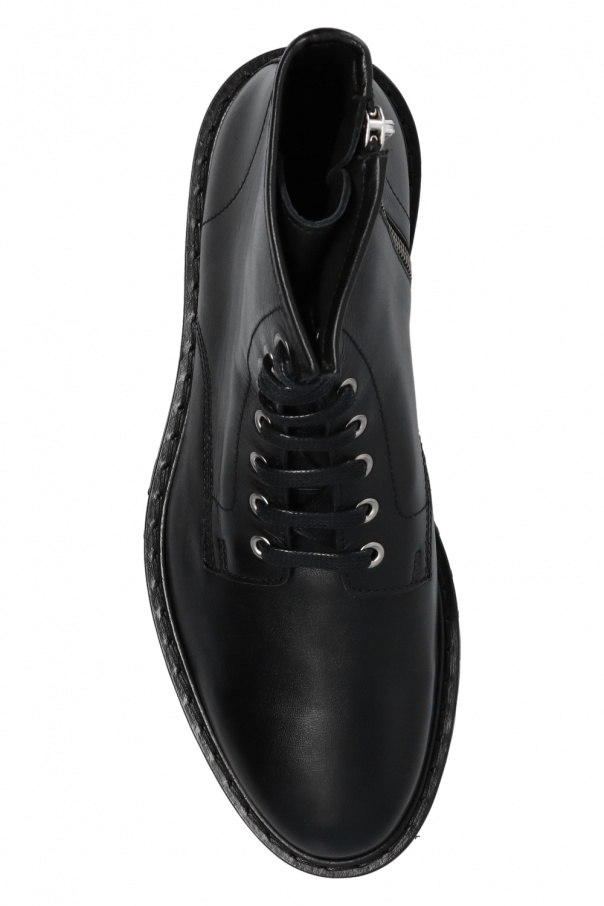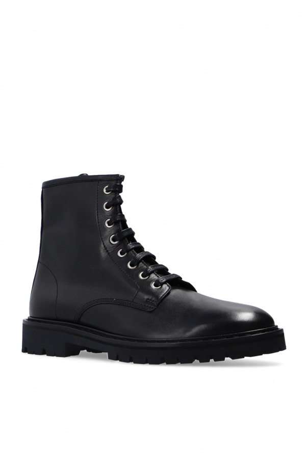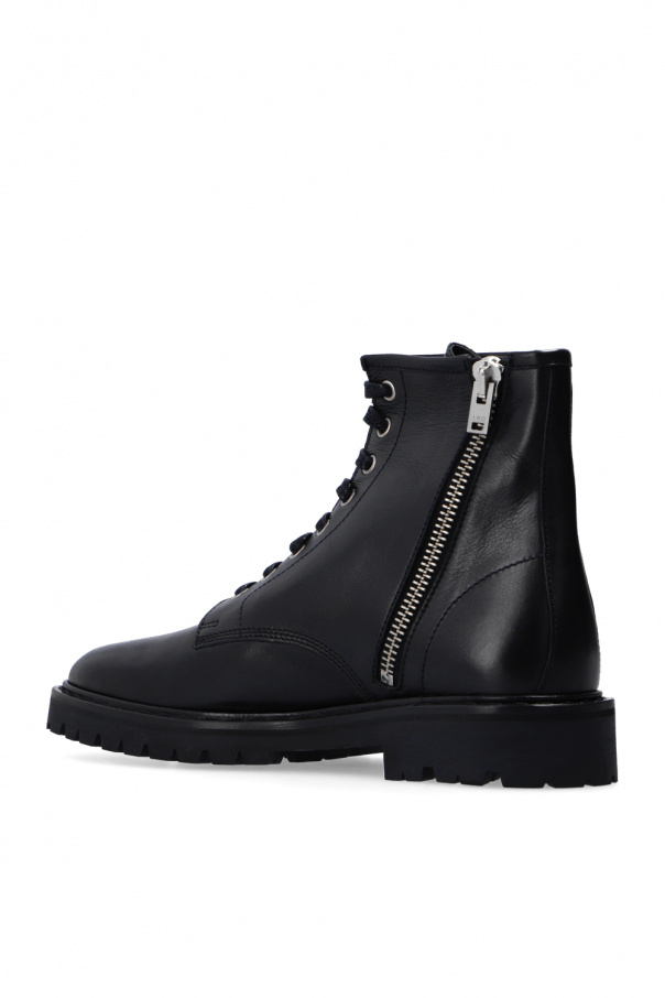 Black ankle boots from Iro. Crafted from leather with an almond-shaped silhouette, this lace-up pair features a side zip closure and a black rubber sole.