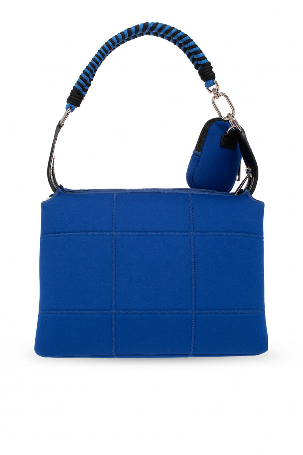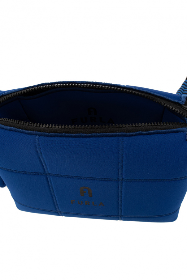 Dark blue ‘Piuma Medium’ quilted handbag from Furla. Fastened with a zip, this style features a black logo, detachable woven strap, AirPods case with logo, silver-tone metal hardware and three separate internal compartments.