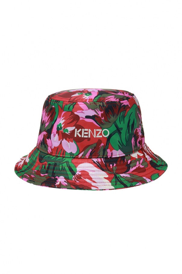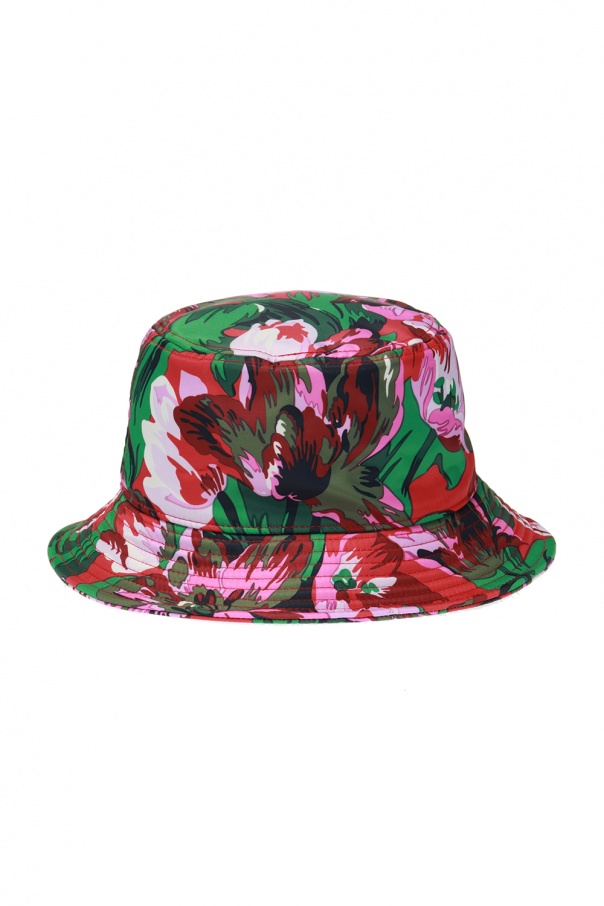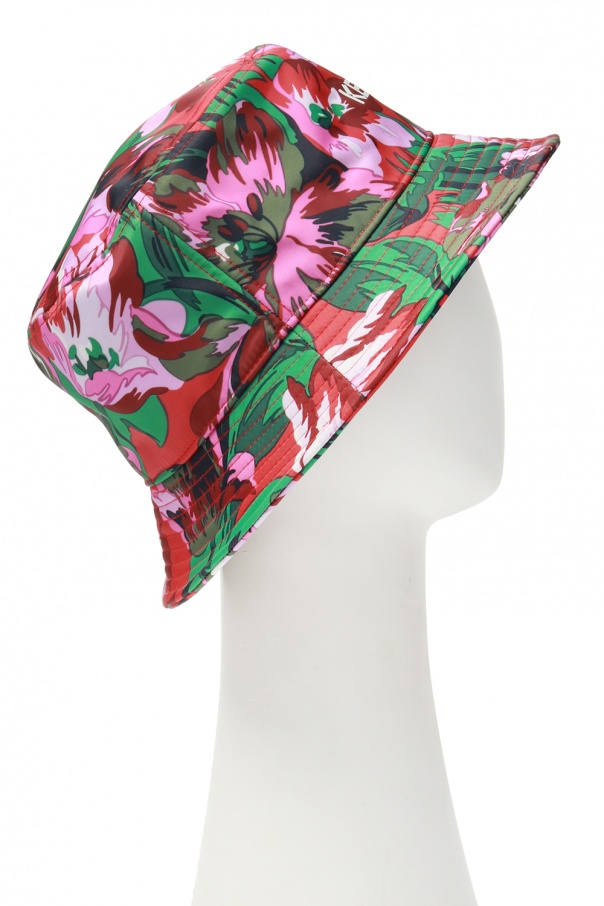 Red, pink and green hat from Kenzo x Vans. Decorated with a floral print and a logo.