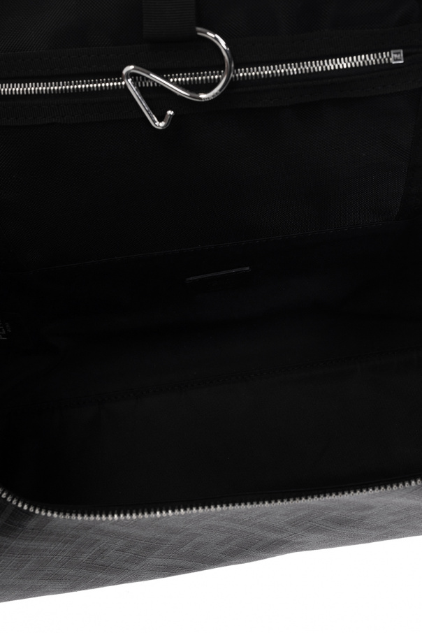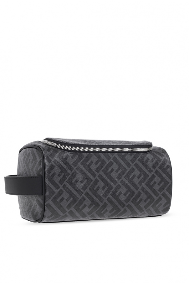 Grey and black wash bag from Fendi. Crafted from monogrammed canvas and trimmed with calf leather, this design features a two-way zip fastening, a half-round handle on the side, silver-tone metal hardware and one internal zip pocket.