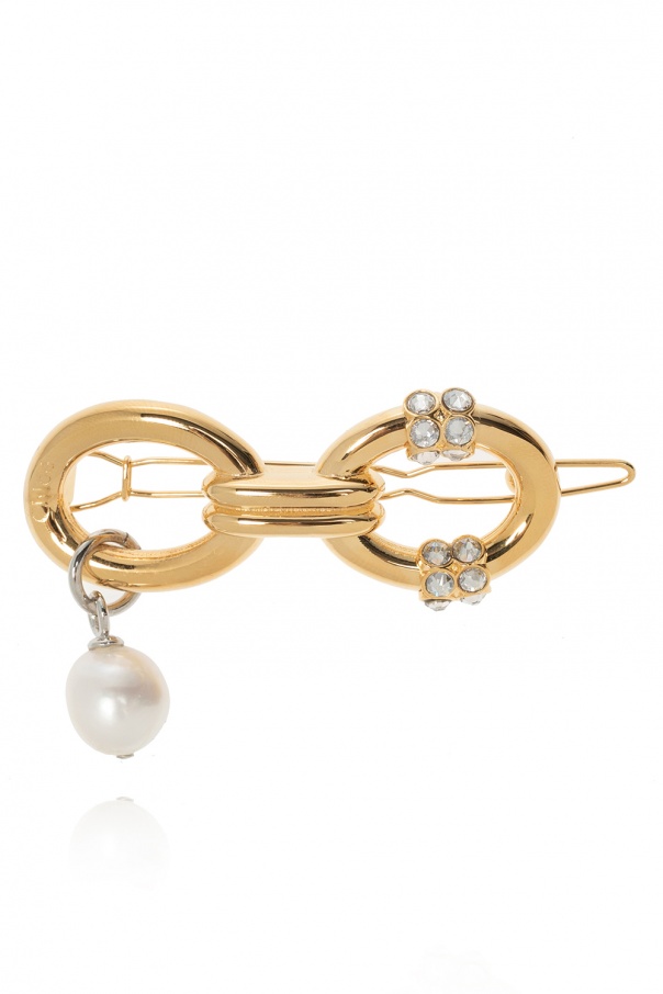Gold-tone and silver-tone hair clip from Chloé. Adorned with glass stones and a pearl pendant, this accessory was embossed with the label's logo.