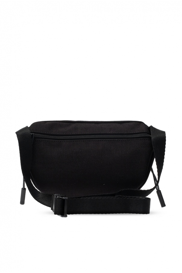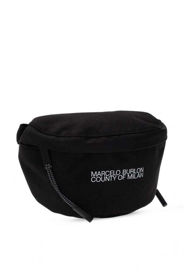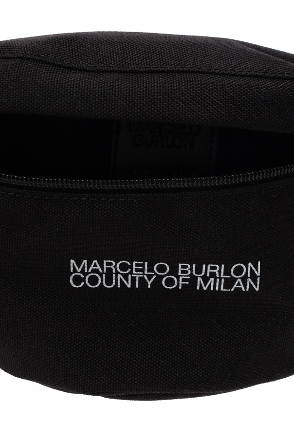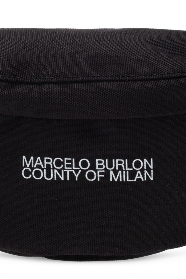 Black belt bag from Marcelo Burlon. Printed with the designer's logo in white, this style fastens via zip and employs an external slip pocket on the back, an adjustable strap and one internal compartment.