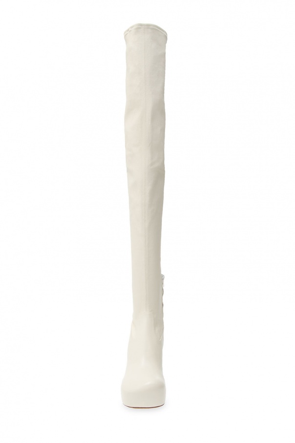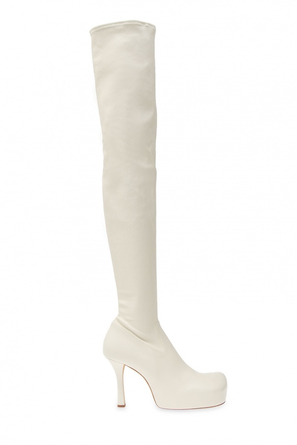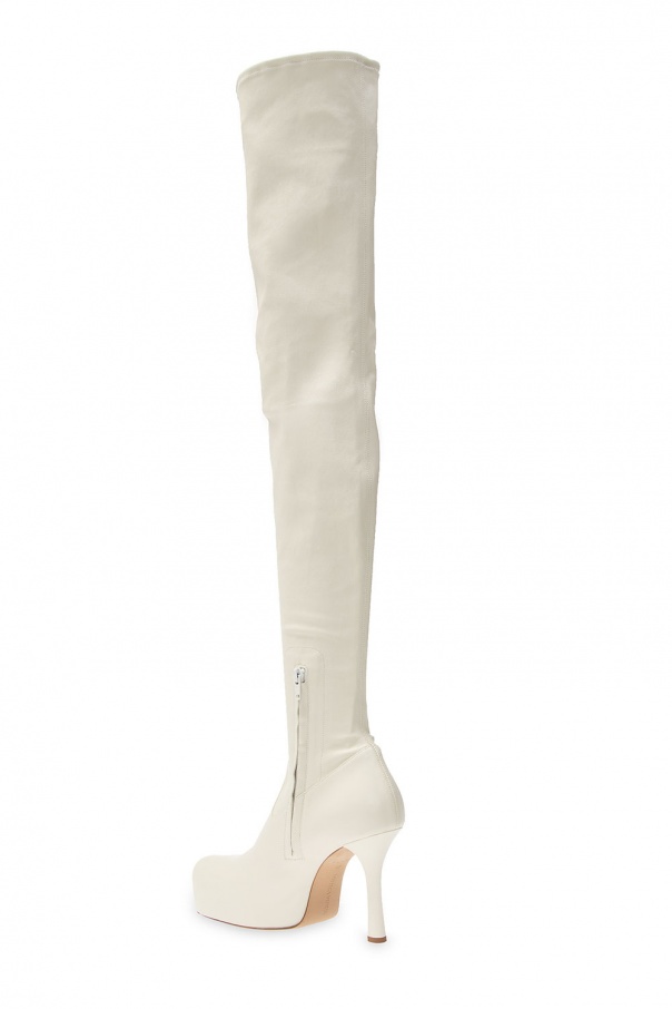 Cream ‘Bold’ platform boots from Bottega Veneta. Crafted from leather, this style features a side zip and a beige leather sole.