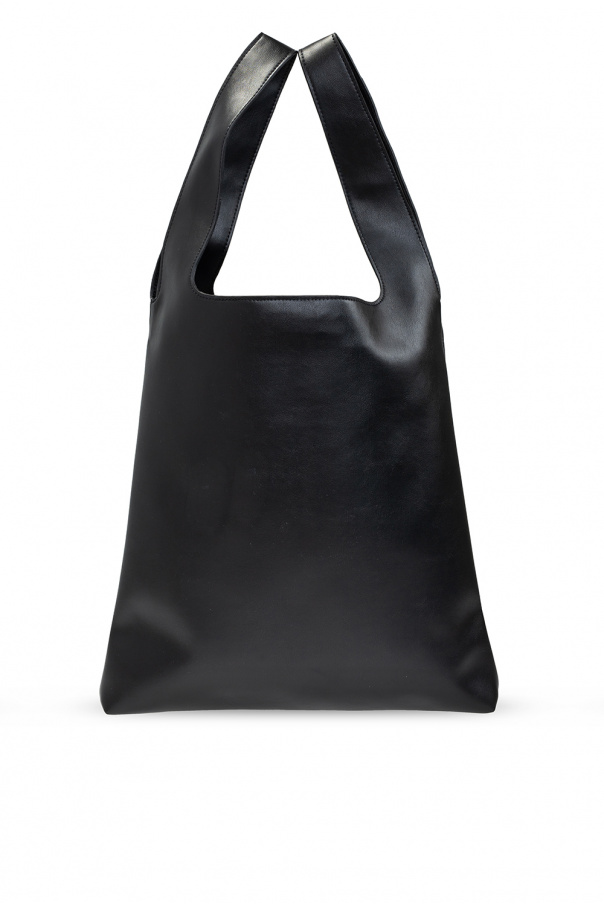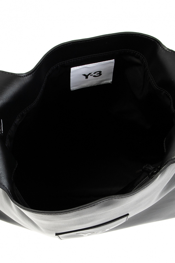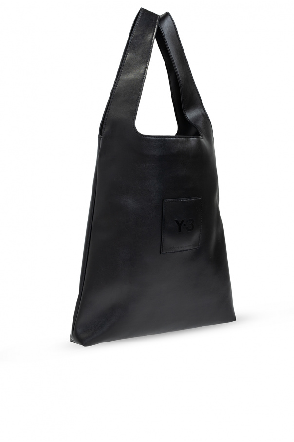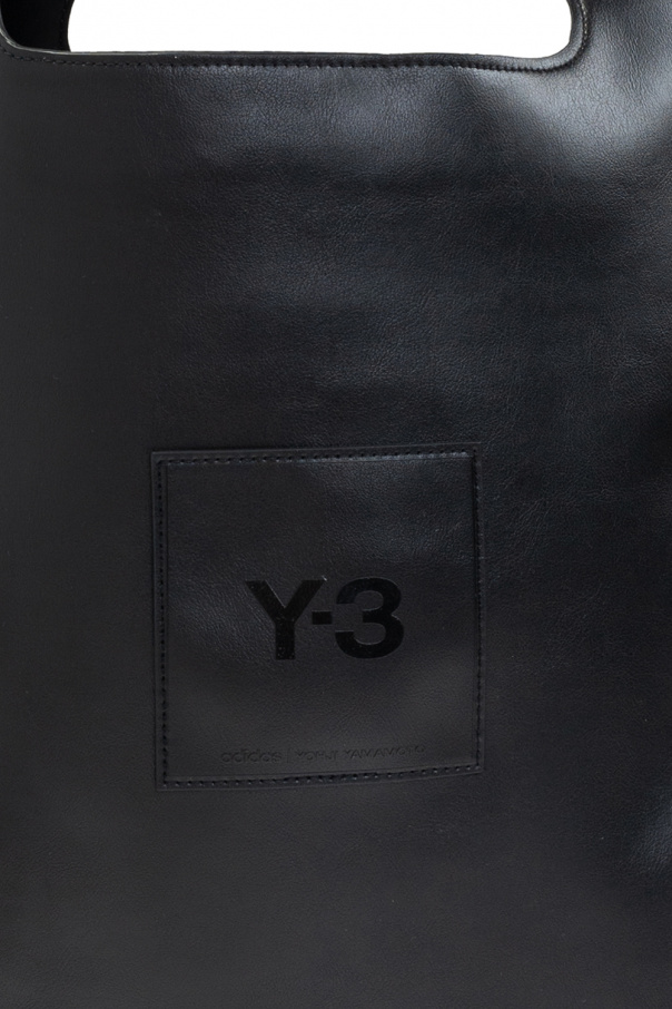 Black shopper bag from Y-3 Yohji Yamamoto. Embellished with an embroidered motif and a graphic logo print in black, this design features one compartment with a zip pocket.