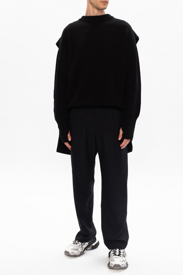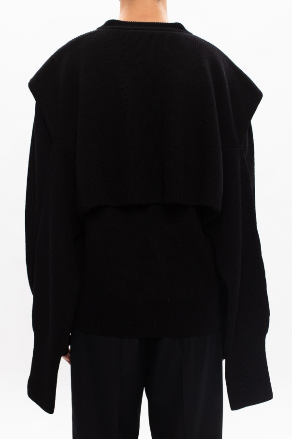 Black sweater from Balenciaga. Crafted from wool, this round neck design is complete with double sleeves and ribbed trims.
