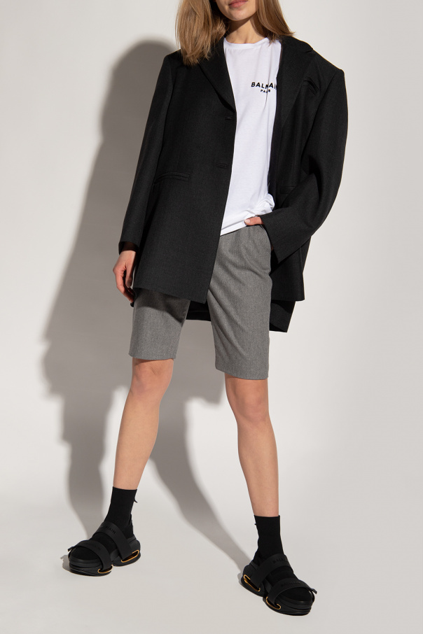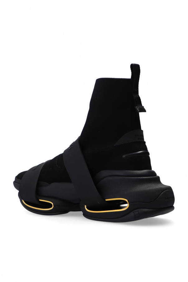 Black ‘B-Bold’ sock sneakers from Balmain. Fastened with velcro straps, this pair features a raised logo and black rubber sole with gold-tone inserts.