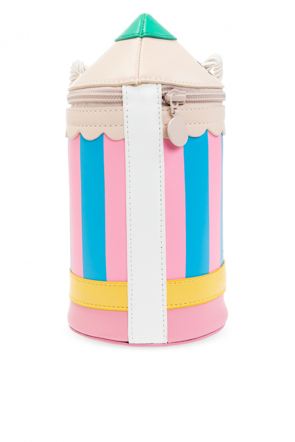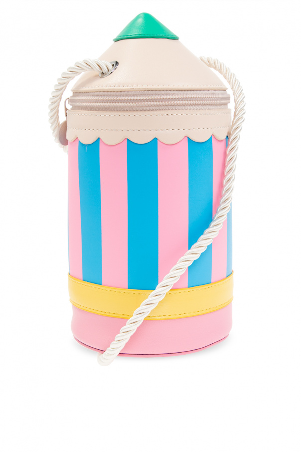 Multicoloured shoulder bag from Stella McCartney Kids. Flaunting a playful motif of a pencil, this design fastens via a zip and features a distinctive scallop trim, a rope shoulder strap and one internal compartment.