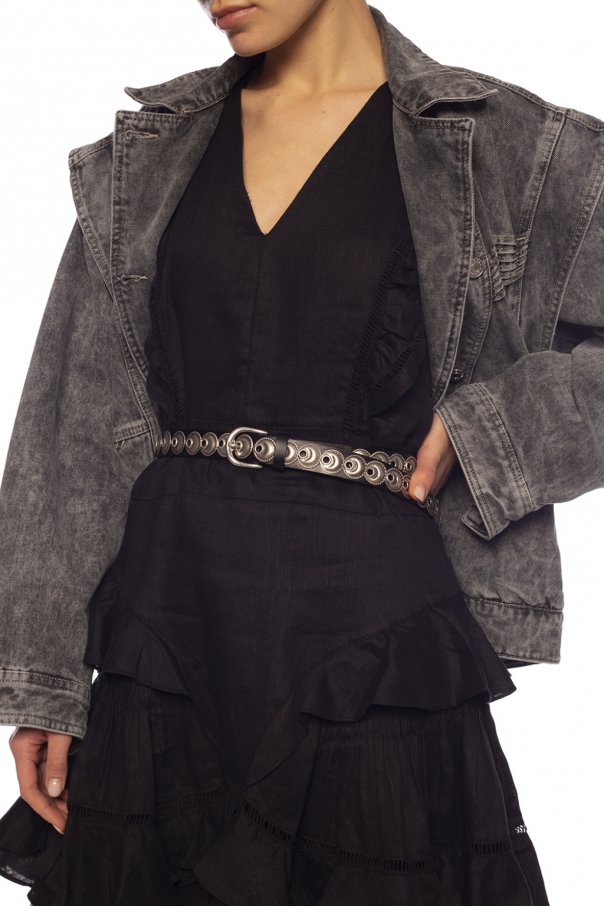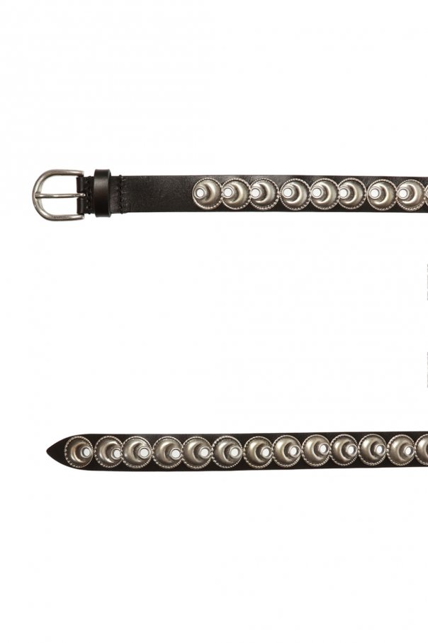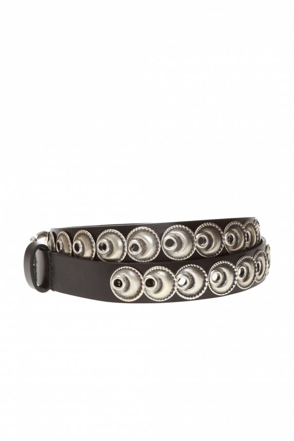 Black belt from Isabel Marant. Made of leather. Enriched by decorative elements in antiqued silver-tone.