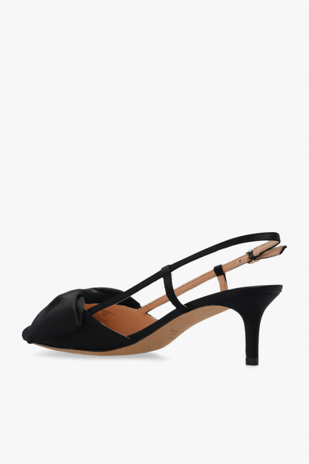 Black ‘Marseille’ slingback pumps from Kate Spade. Made of satin. Fastened with an adjustable buckle strap, this pair has a bow detail, pointed toe and beige leather sole.