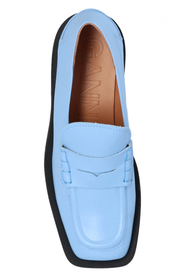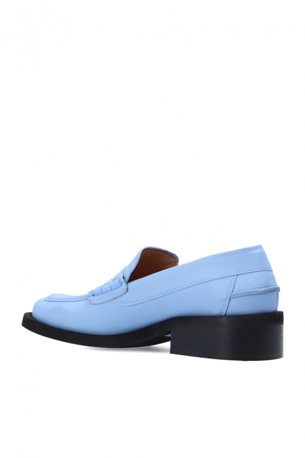 Light blue moccasins from Ganni. Crafted from leather, this model sits on a black rubber sole.