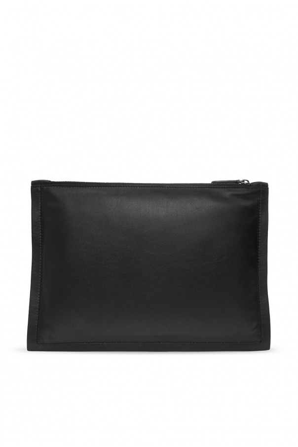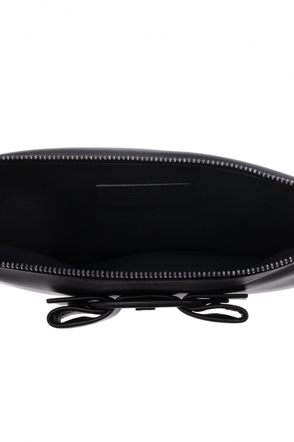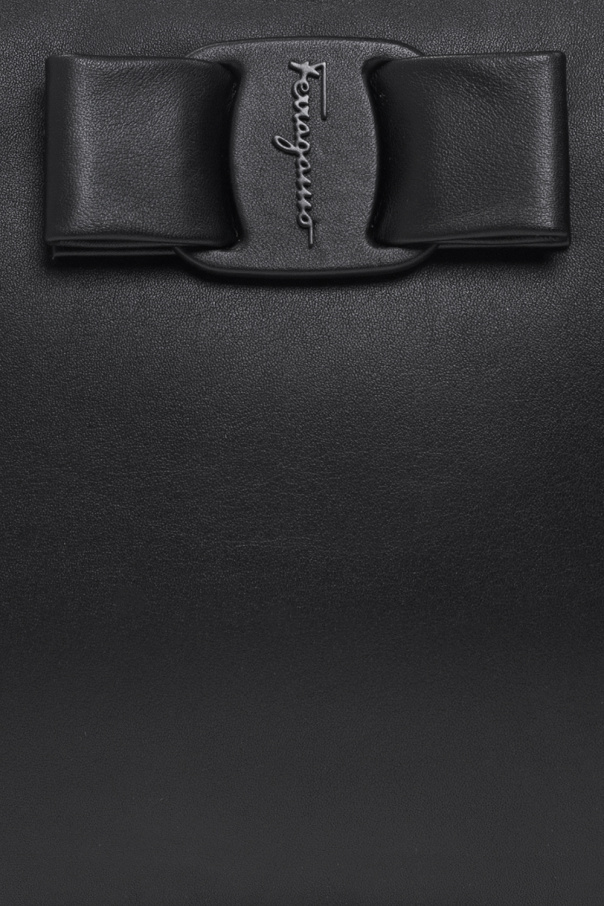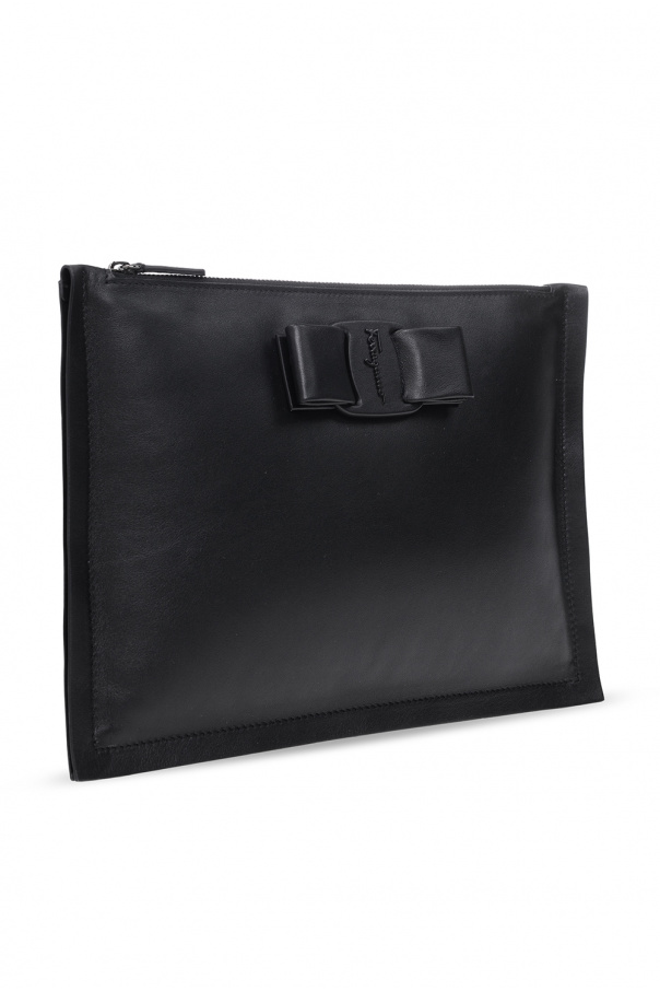 Black clutch from FERRAGAMO. Crafted from calf leather, this design features a zip fastening, the brand's signature Viva bow on the front, and one internal compartment.