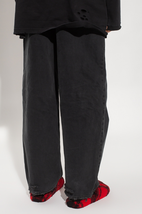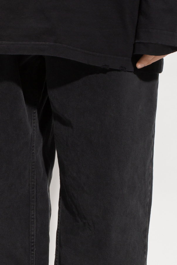 Black jeans from Balenciaga. Falling with wide, straight legs, this pair features a vintage-effect, a zip fly with a button and classic five pockets.