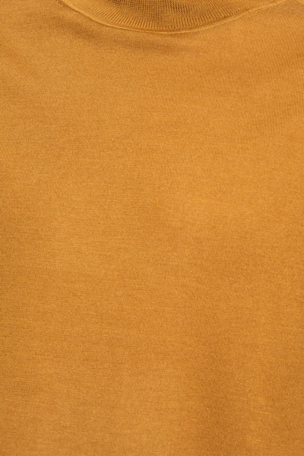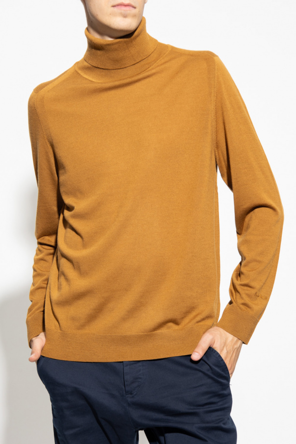 Brown turtleneck sweater from Paul Smith. Crafted from merino wool, this garment is enriched by multicolored embroidered stripes and ribbed trims at the hem and cuffs.