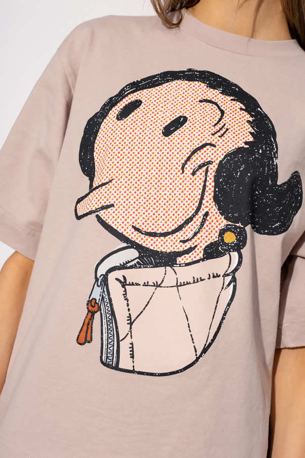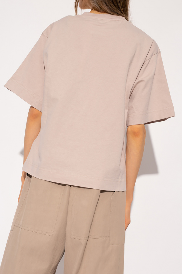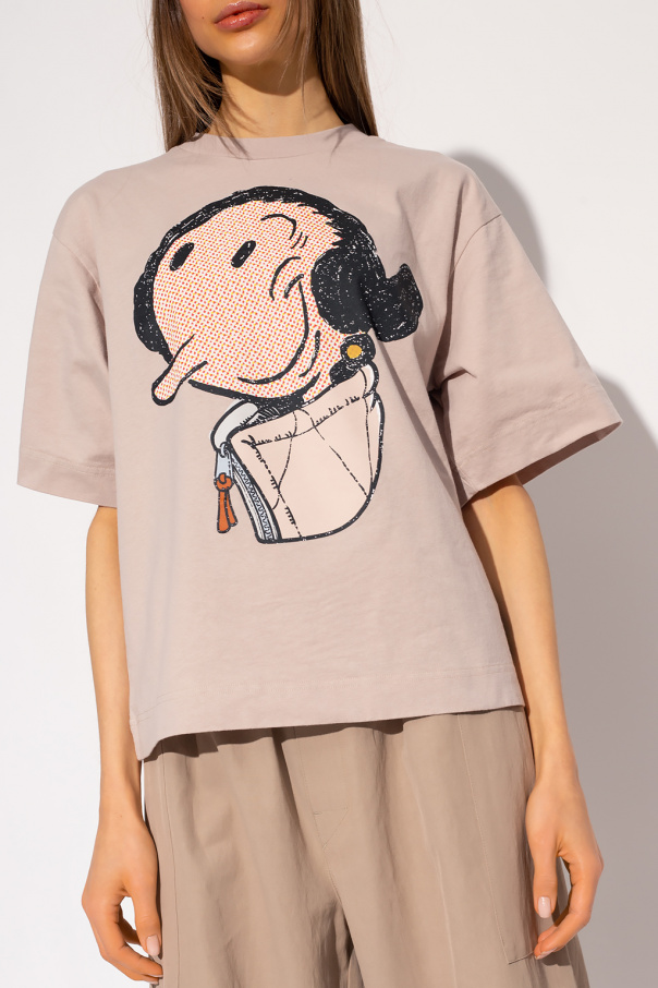 Beige loose-fitting T-shirt from Moncler Genius x Olive Oil, the ‘1952 No.2’ collection. Made of cotton, this short sleeve design features a ribbed crewneck and ‘Olive Oil’ print.