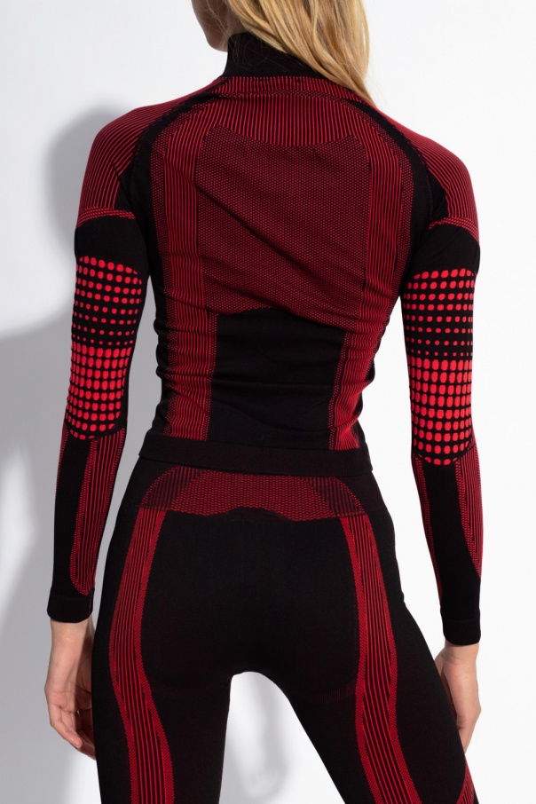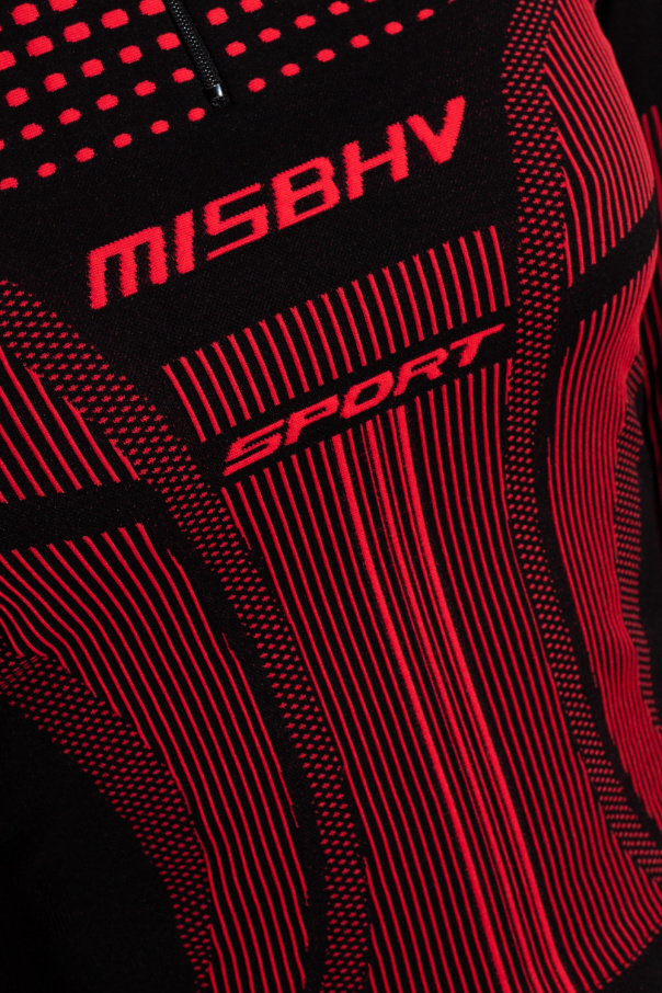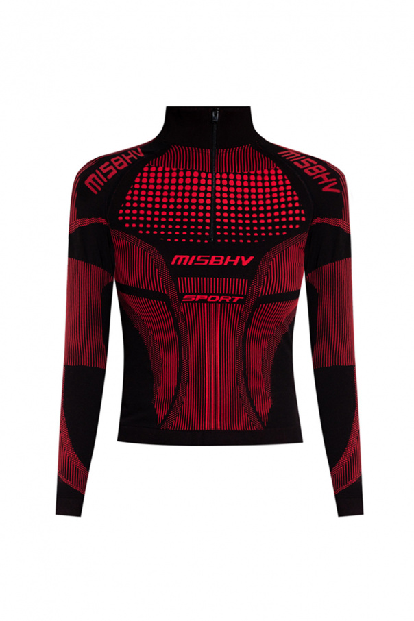Black and red ‘Sport Active Classic’ top from MISBHV. Crafted from breathable thermo-active fabric with a slim-fitting silhouette. 60% of the yarn is recycled. This style showcases a zip fastening, a mock neck, long sleeves, elastic details on the bottom hem and cuffs, exposed stitching and an embroidered logo. This product was made in Poland with the use of 100% energy from solar panels, to reduce negative impact on our environment.