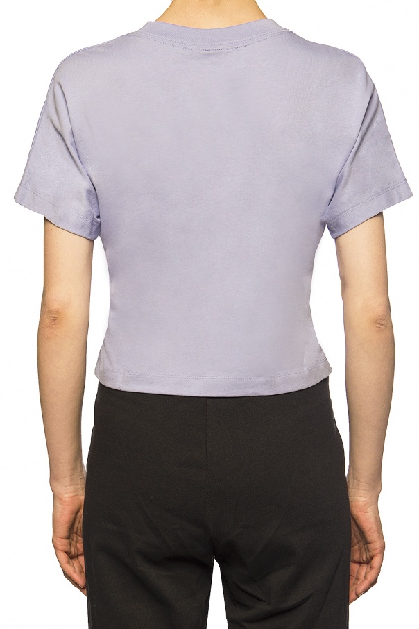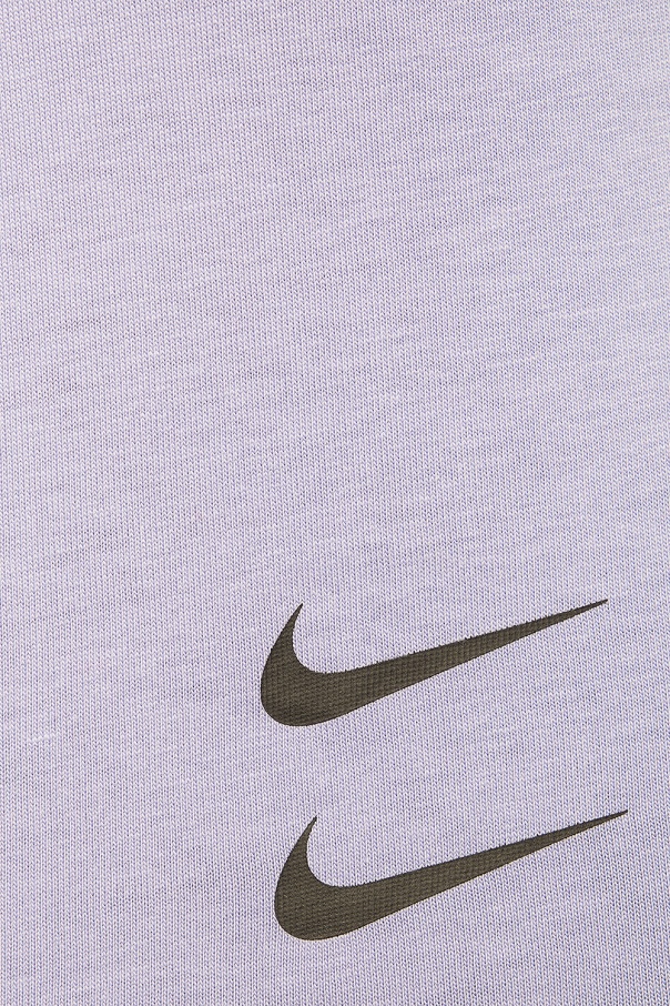 Purple T-shirt from Nike. Made of cotton. Decorated with a black logo print. Round neck.