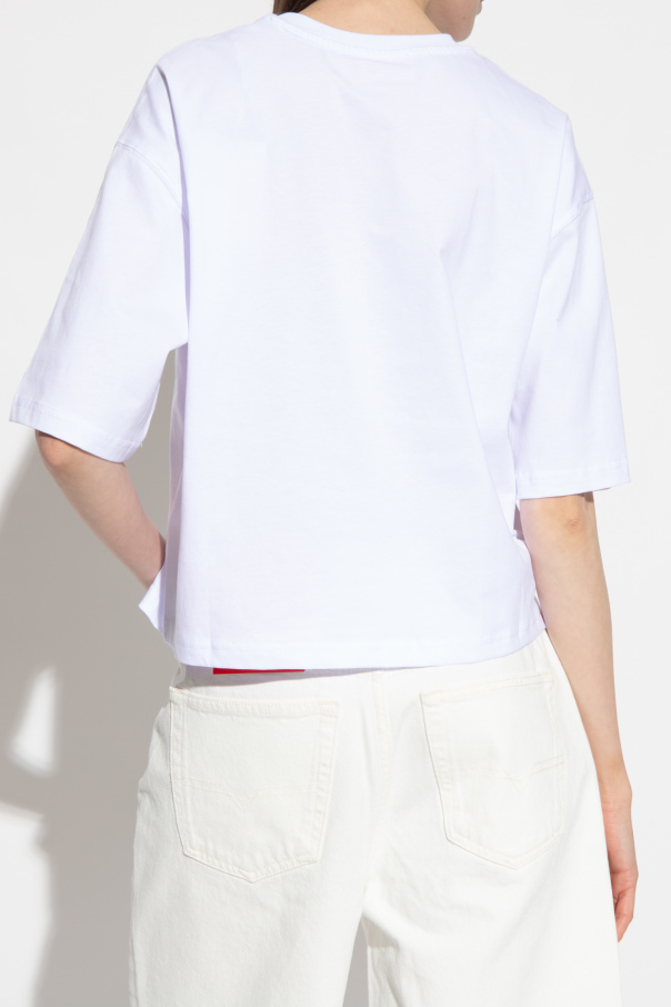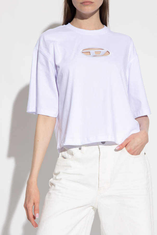 White ‘T-ROWY-OD’ T-shirt from Diesel. Made of cotton, this garment features a detail with a cut-out logo and ribbed crew neck.