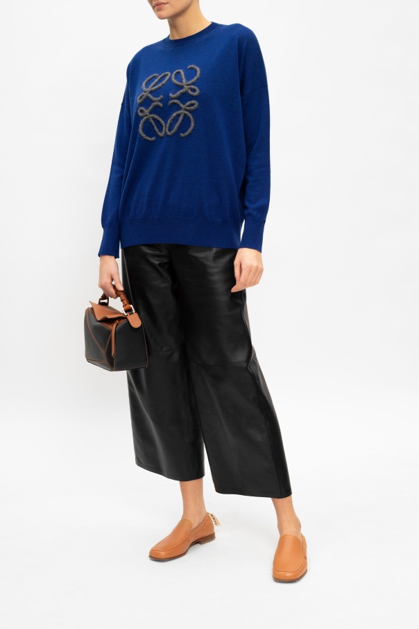 Brown moccasins from Loewe. Crafted from leather, this pair boasts a square toe silhouette with an elasticated heel, a white and black branded grosgrain tab at the ankle and a brown leather sole at the base.